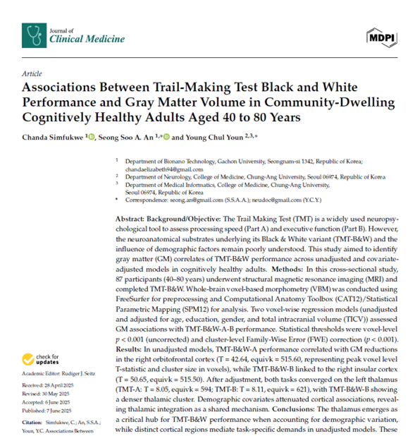 Exciting News! Our latest article has just been published. Associations Between TMT-B&W and Gray Matter Volume.